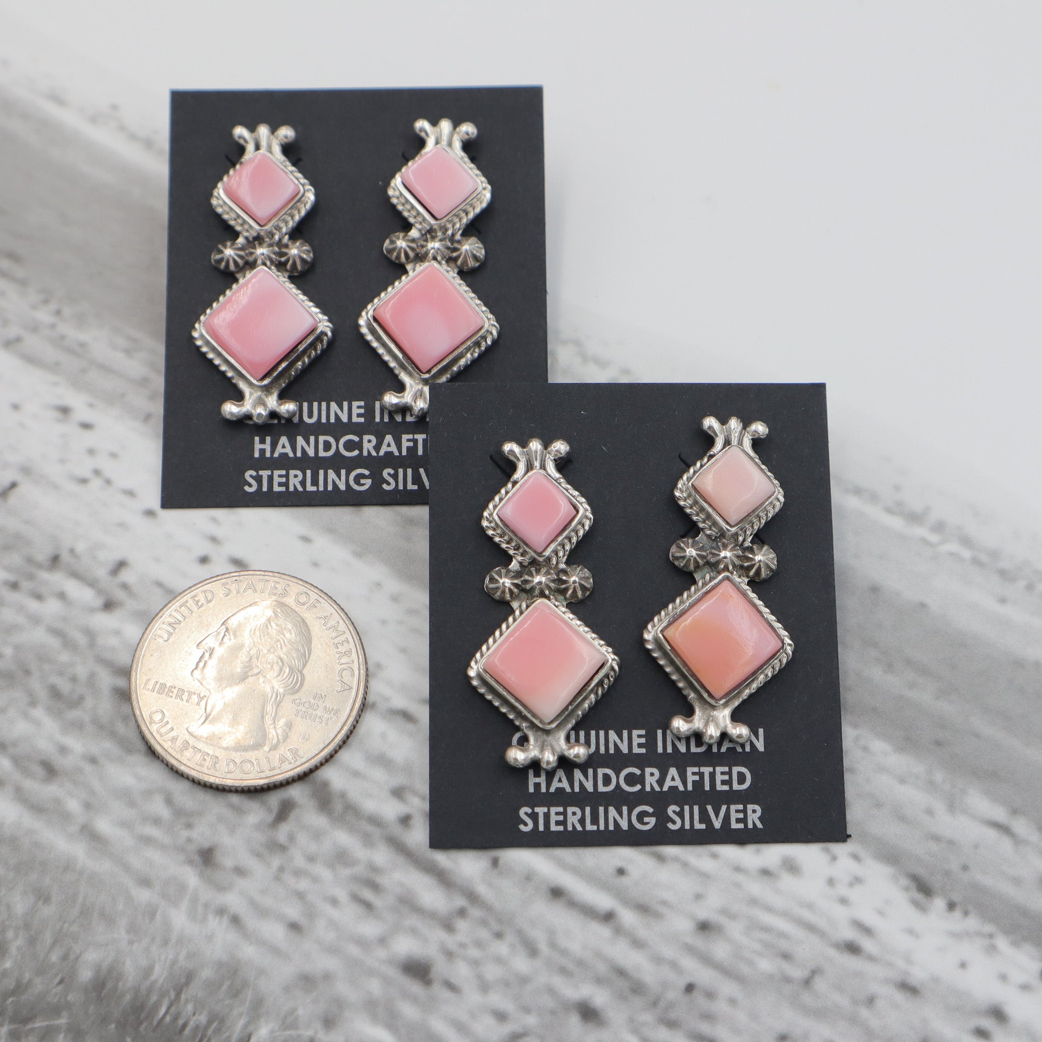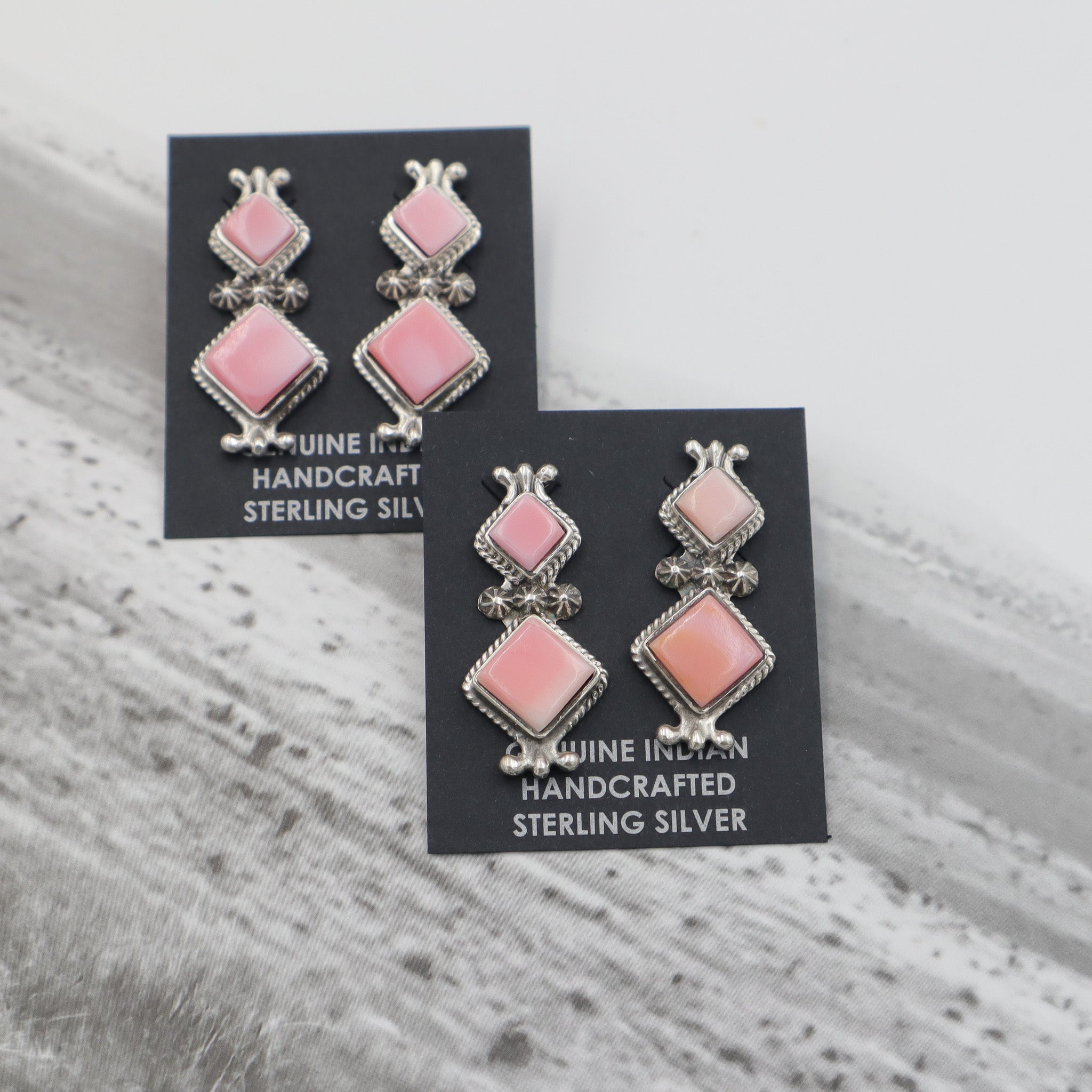 Pink Conch Double Diamond Shaped Earrings